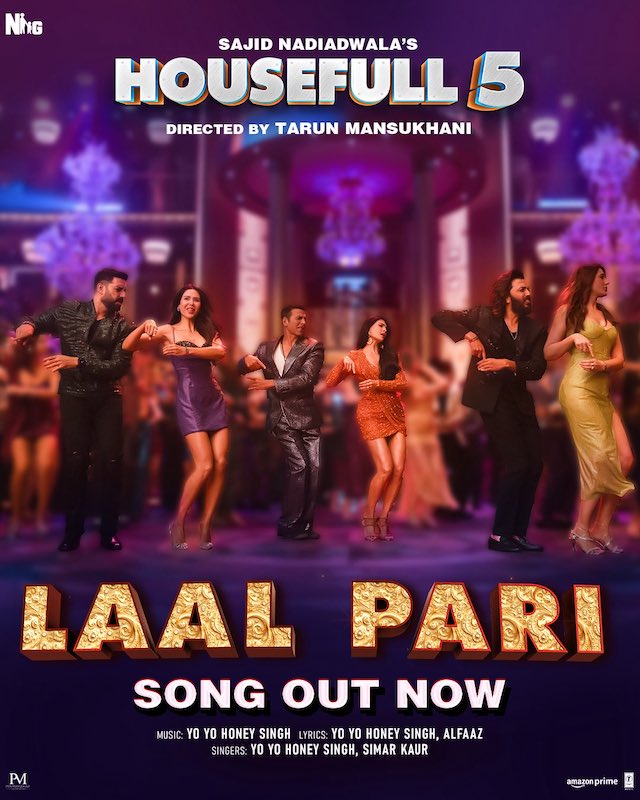 बॉलीवुड की सबसे मशहूर कॉमेडी फ्रेंचाइजी ‘हाउसफुल 5’ का पहला गाना ‘लाल परी’ निर्माताओं द्वारा शुक्रवार को रिलीज कर दिया गया। फिल्म केटीजर रिलीज के बाद से ही इससे जुड़ी अपडेट का फैंस इंतजार कर रहे थे। गाने ने प्रशंसकों की उत्सुकता को बढ़ा दिया है। अब उन्हें इसके ट्रेलर औरसिनेमाघरों में इसके रिलीज का इंतजार है।