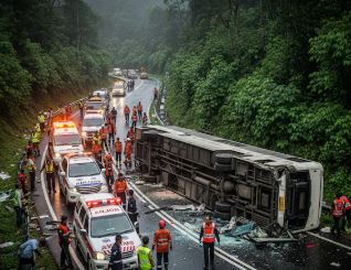 इंडोनेशिया में भीषण सड़क हादसा, तेज रफ्तार बस पलटी, 15 की मौत, 19...